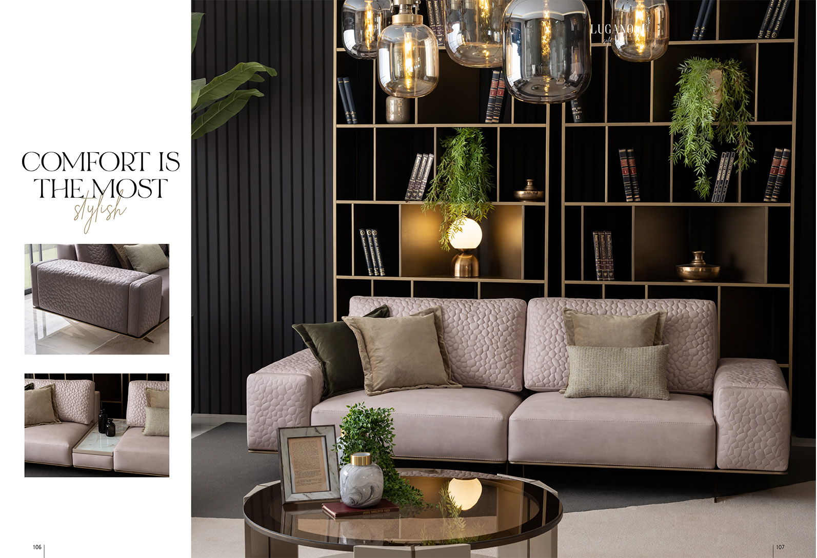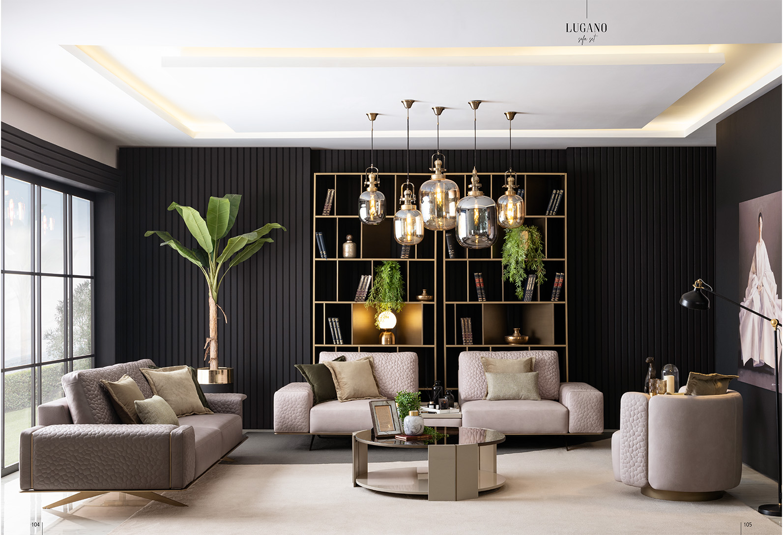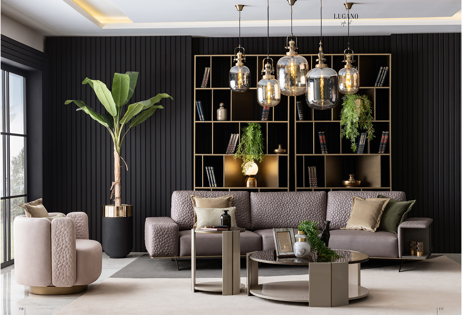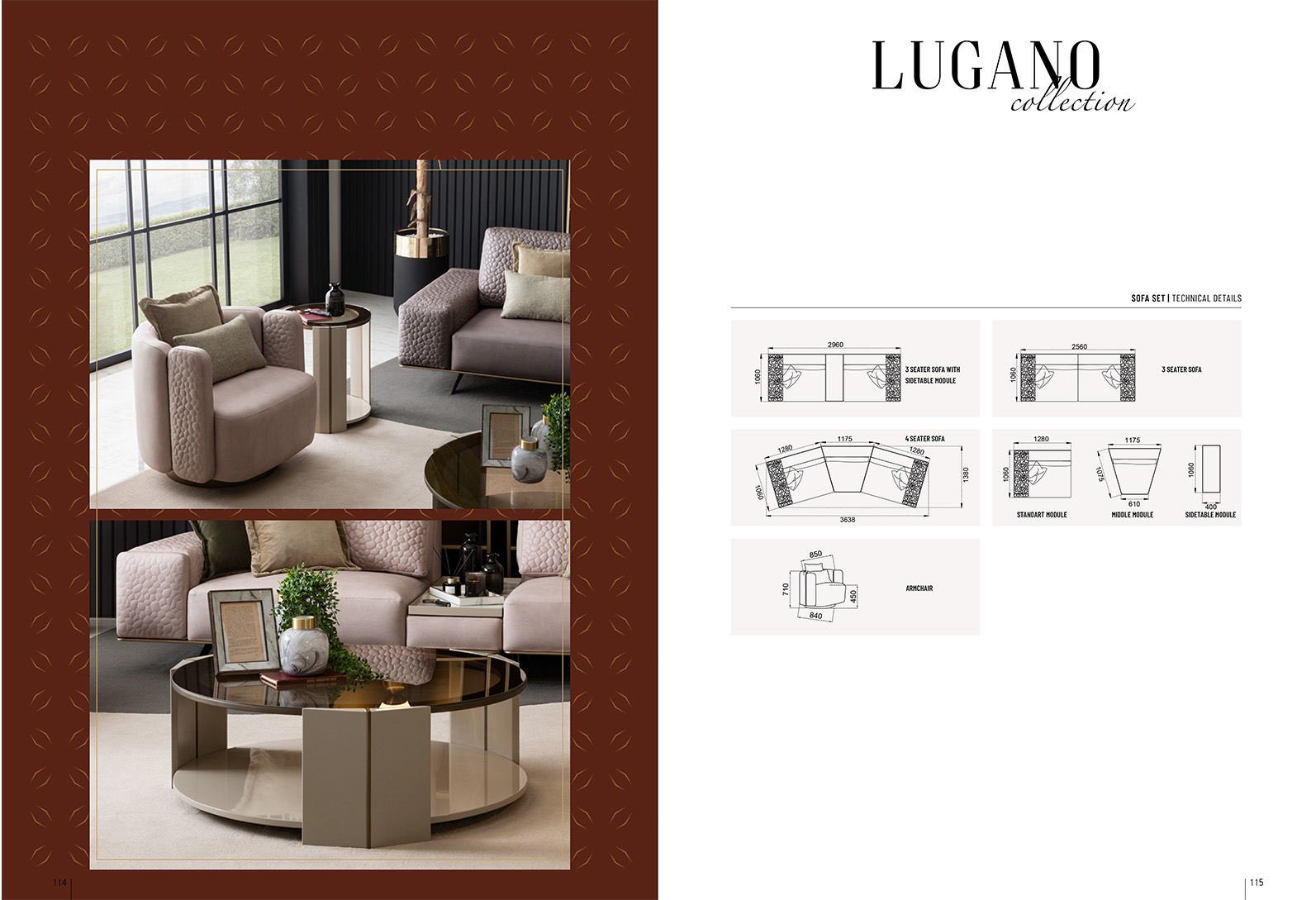 The Lugano living dining set is a stylish, modern furniture ensemble featuring a sleek design with clean lines, ideal for contemporary living spaces.