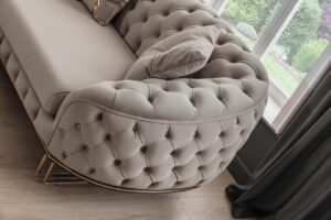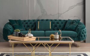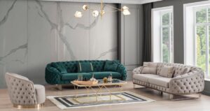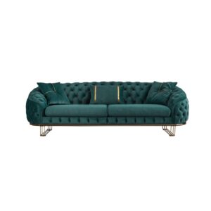 Beautiful living room set in luxurious with an emerald green 3 seater , pastel 3 seater and an arm chair